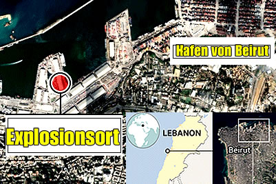 Am 04.August 2020. Um 18:08 Uhr (Ortszeit) ereignete sich in der Hauptstadt des Libanons Beiruts an einer Lagerhalle am Hafen eine riesige Explosion (Bild).