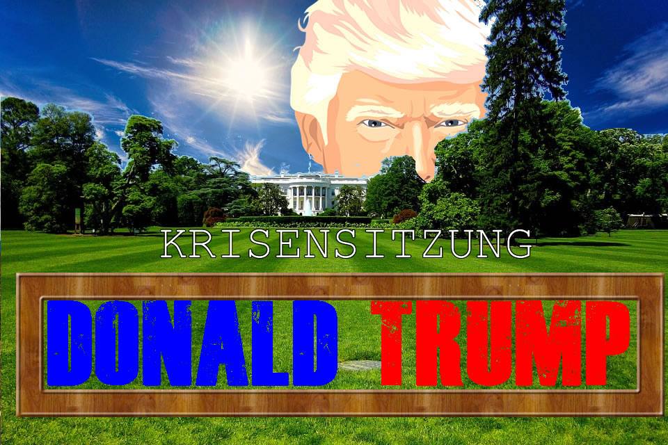 US-PRÄSIDENT DONALD TRUMP hält aufgrund der dramatischen Ereignisse eine Fernsehansprache an sein Volk: "LIEBE LANDSLEUTE DIE AKTUELLEN EREIGNISSE SIND EIN TRAGISCHER RÜCKSCHLAG IN UNSEREM BEMüHEN DEN WELTRAUM ZU EROBERN. ICH WEISS WER HINTER DIESE FEIGEN ANSCHLäGE IN BEIRUT UND AUF MEIN FLUGZEUG STECKT UND ICH HABE MEINEN BESTEN MANN LOSGESCHICKT. NICHTS WIRD UNS AUFHALTEN, DIE GERECHTIGKEIT WIRD LETZTENDLICH SIEGEN!